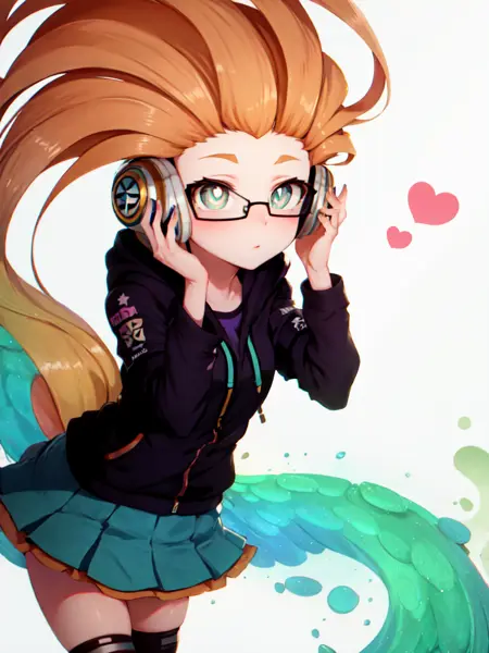 标准服装请使用耳机、眼镜、连帽衫、裙子、过膝靴、黑色镜框眼镜。