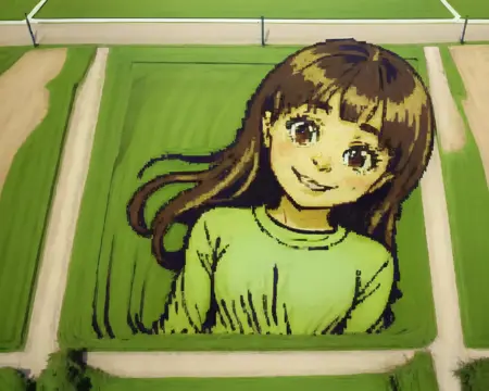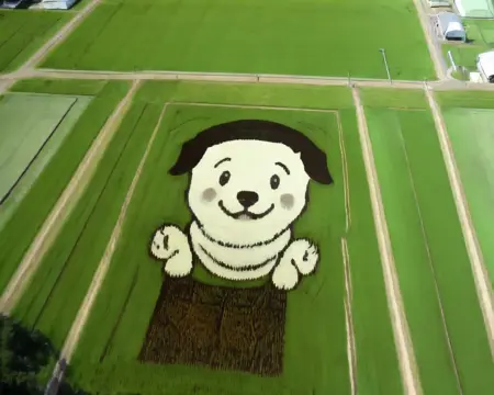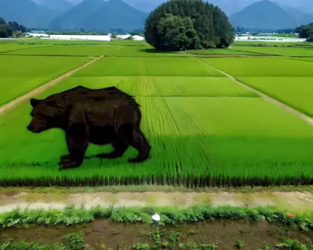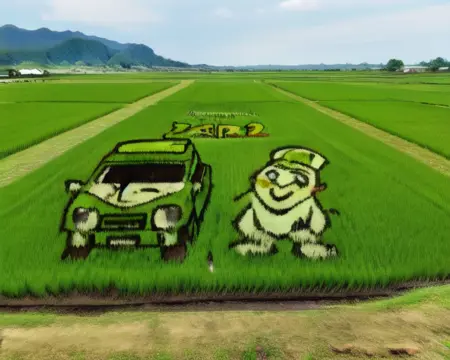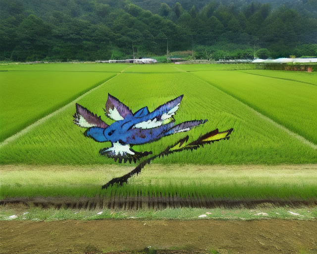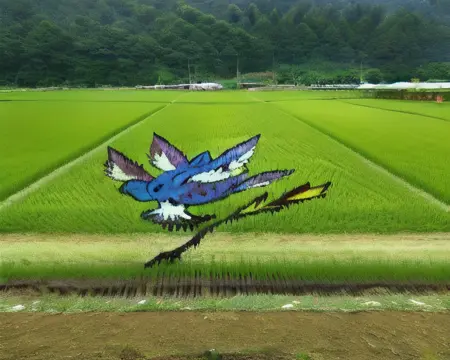 这是一种通过在稻田中种植不同品种的水稻而创作的艺术。