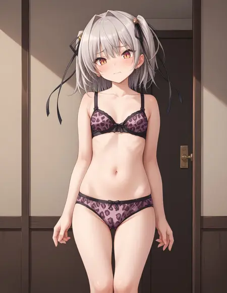 outfit04, swimsuit, 2-piece swimsuit, purple swimsuit, ribbon swimsuit, plaid swimsuit, pattern swimsuit, lace trimmed swimsuit, tankini, tank top, rose on hair,