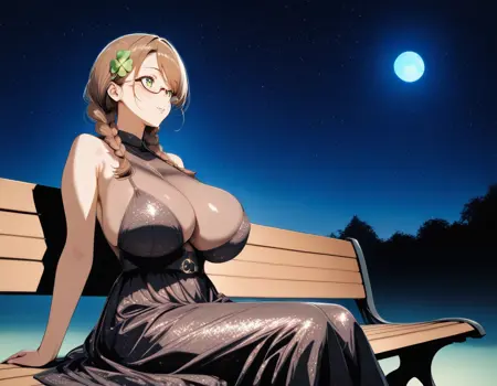 推荐提示:konoe-yotsuba, yotsuba-yutosei, 巨乳, 长棕色头发, 低双马尾, 双辫子, 绿眼睛, 三叶草发饰, 垂落刘海, 半框眼镜,