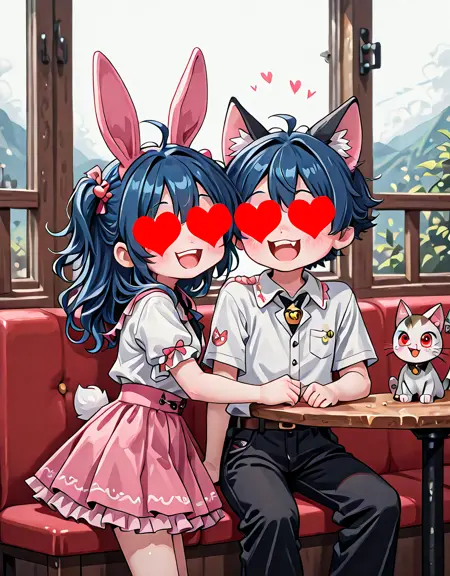 - 1girl normal eyes => ランダムで動作します。メインキャラが通常の目で、サブキャラがハートの目になるシーンを作ろうとしていましたが、あまりうまくいきません。ただし、猫にハートの目を付ける場合は有効かもしれません。