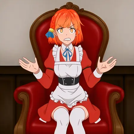 Maria, 1girl, solo, orange hair, amber eyes, hair ornament