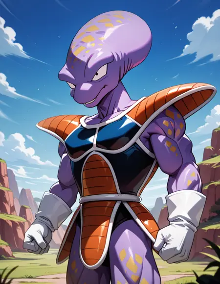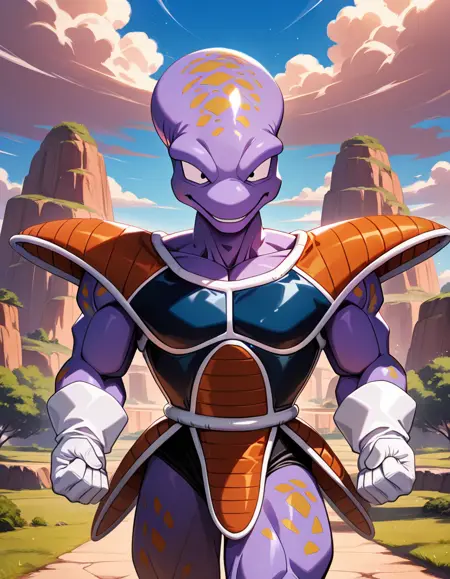 이미지가 더 잘 나타나도록 하려면 다음과 같은 프롬프트를 사용하는 것이 도움이 됩니다: (노란색 점이 있는 보라색 피부, 애니메이션 드래곤볼 Z 스타일, 비디오 게임 드래곤볼 스파클링 제로 스타일, 토리야마 아키라의 예술 스타일, 프리즈라 부대 갑옷, 사이야인 갑옷, 스카우터 장치). 스카우터 장치는 원할 때만 사용하는 것이며, 이 LoRA가 원래 만들어질 때 사용된 프롬프트 일부는 아닙니다. 그러나 사용할 경우 나타납니다.