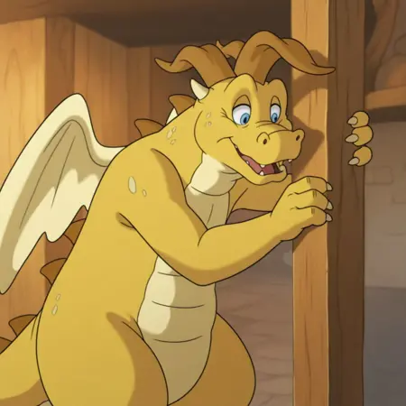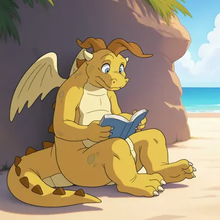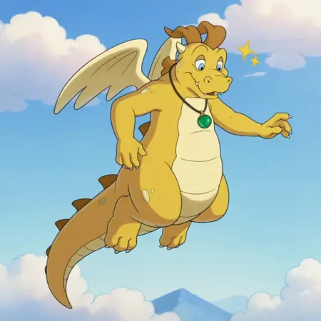 QuetzalDTil, male, semi-anthro, dragon, yellow skin, brown spikes, horns, wings, blue eyes, jewelry, necklace