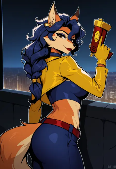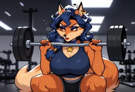 외형 태그: 여우 소녀, 이톤 털, 주황색 털, 흰색 털, 여우 귀, 코, 여우 꼬리, 눈 밑 주근깨, 앞머리, 파란색 머리, 긴 머리, 파마 머리, 땋은 포니테일, 갈색 눈, 메이크업, 립스틱, 붉은 입술