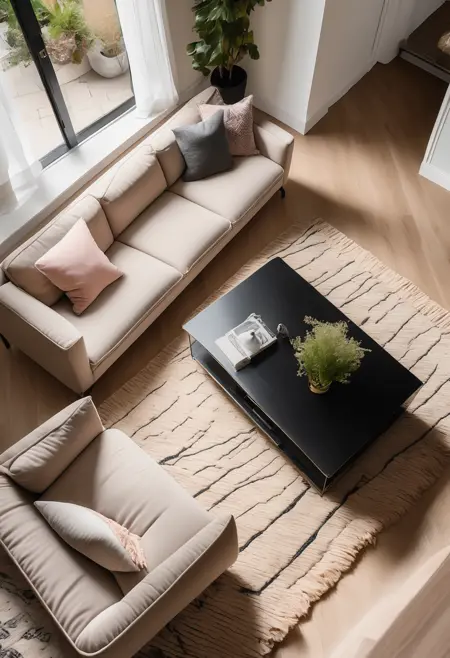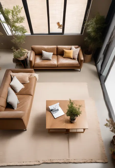이 LoRA는 방의 위에서 바라본 조감도를 생성할 수 있습니다.