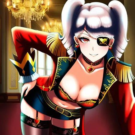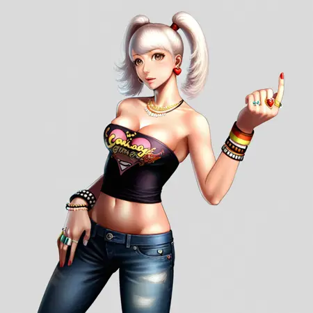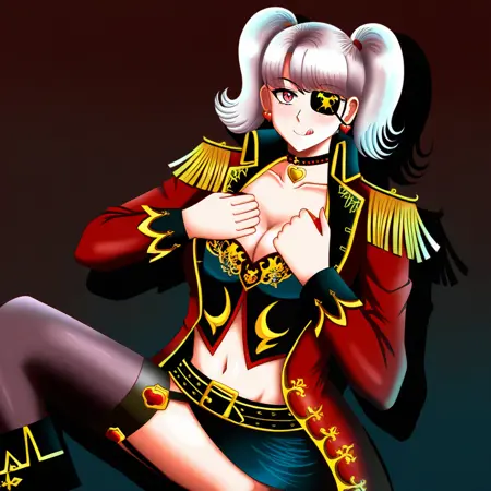 | Trained Words | CSO_Mi, 1girl, solo, red eyes, white hair, twintails, hair ornament, medium breasts, balck denim skirt, cleavage, necklace, jewelry, bracelet, elbow gloves, belt, short shorts, thighhighs, bootsCopied! CSO_Mi_LE, 1girl, solo, white hair, twintails, brown eyes, earrings, necklace, ring, bracelet, nail polish, tube top, crop top, strapless, cleavage, bare shoulders, midriff, navel, pants, jeans, denim, jewelryCopied! CSO_Mi_Pi, 1girl, solo, red eyes, eyepatch, heart print, grey hair, twintails, medium breasts, pirate hat, black hat, choker, navel, fishnet thighhighs, jewelry, bare shoulders, necklace, shirt, panties, striped clothes, striped shirt, skirt, underwear, belt ,bootsCopied! CSO_Mi_Tr, 1girl, solo, red eyes, eyepatch, white hair, medium breasts, twintails, cleavage, navel, garter straps, skirt, jewelry, thighhighs, black skirt, midriff, choker, belt, miniskirt, collarbone, earrings, open clothes, jacket, epaulettes, bootsCopied! |