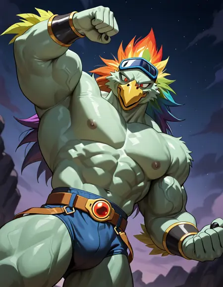 在某些情况下,使用如(鸟喙,黄色皮革状鸟爪)等提示词有助于让角色更清晰地呈现。部分检查点会因训练所用默认图像的原因,意外移除鸟喙并使用不同的爪子。此外,添加与服装相关的提示词也有帮助。在某些检查点中可能出现尾巴,因此在负面提示中加入“无尾巴”有助于去除尾巴,因为该角色本无尾巴。