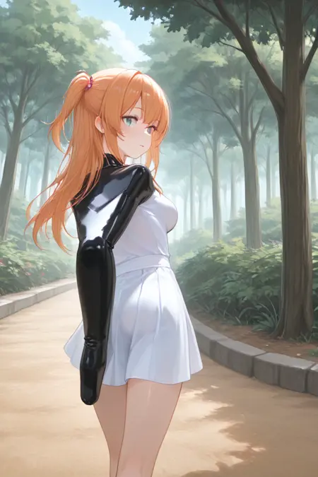 我原本想训练一个臂缚模型,但不是那种常见的双肩带固定式臂缚,而是更像服装、能覆盖大部分前胸区域的款式,类似这样: