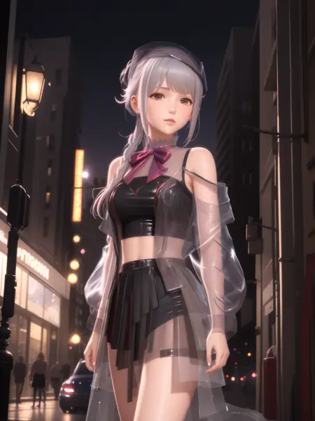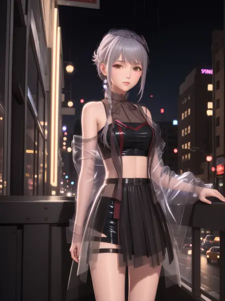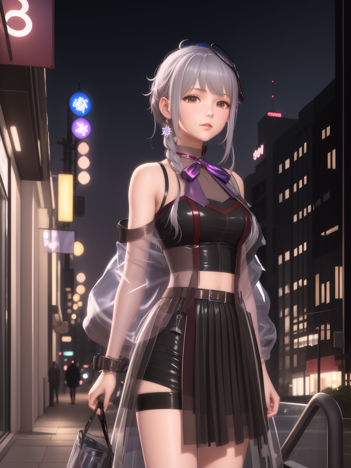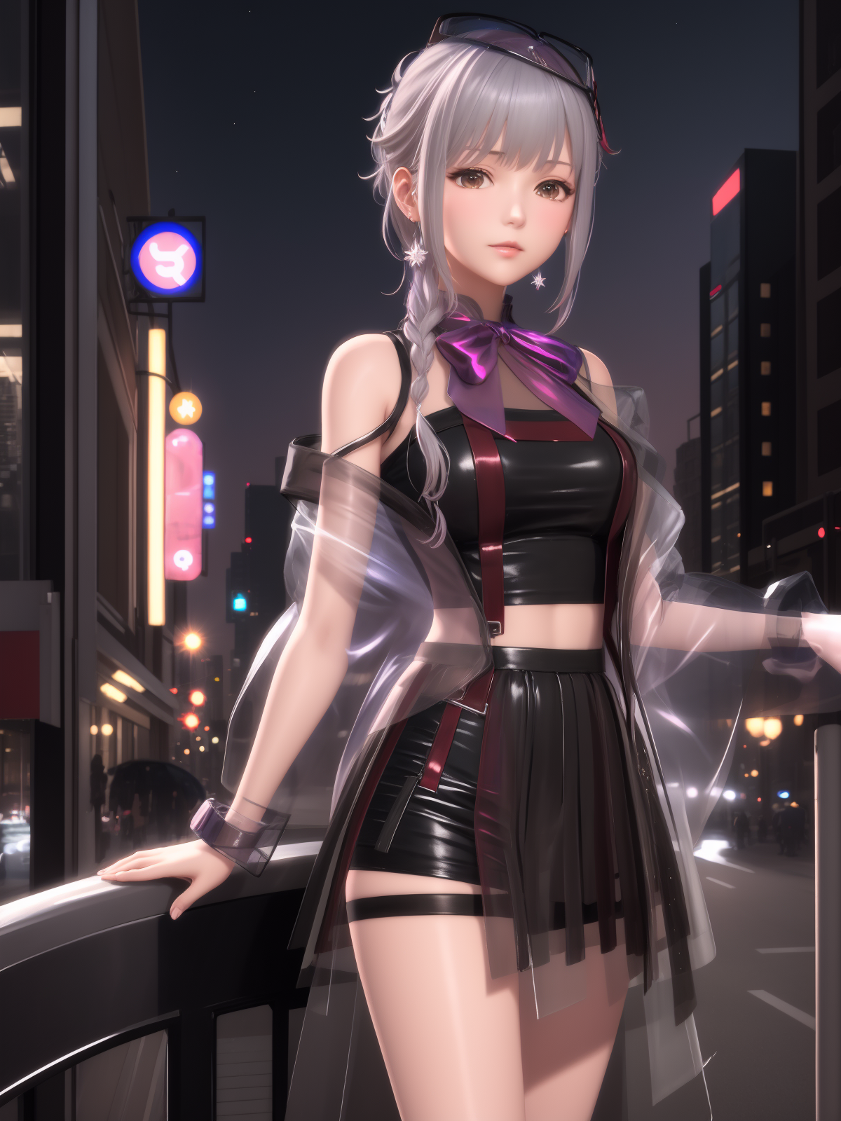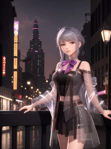 - SYNNniguangzhishiREV,1girl,looking at viewer, cowboy shot, mature female, cityscape, night,