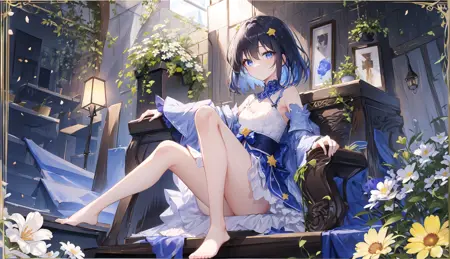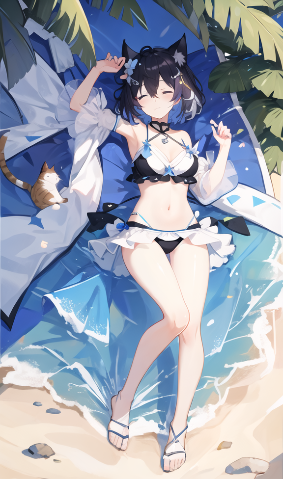 触发词:1girl, solo, bangs, blue eyes, short hair, blue hair, hair between eyes, black hair