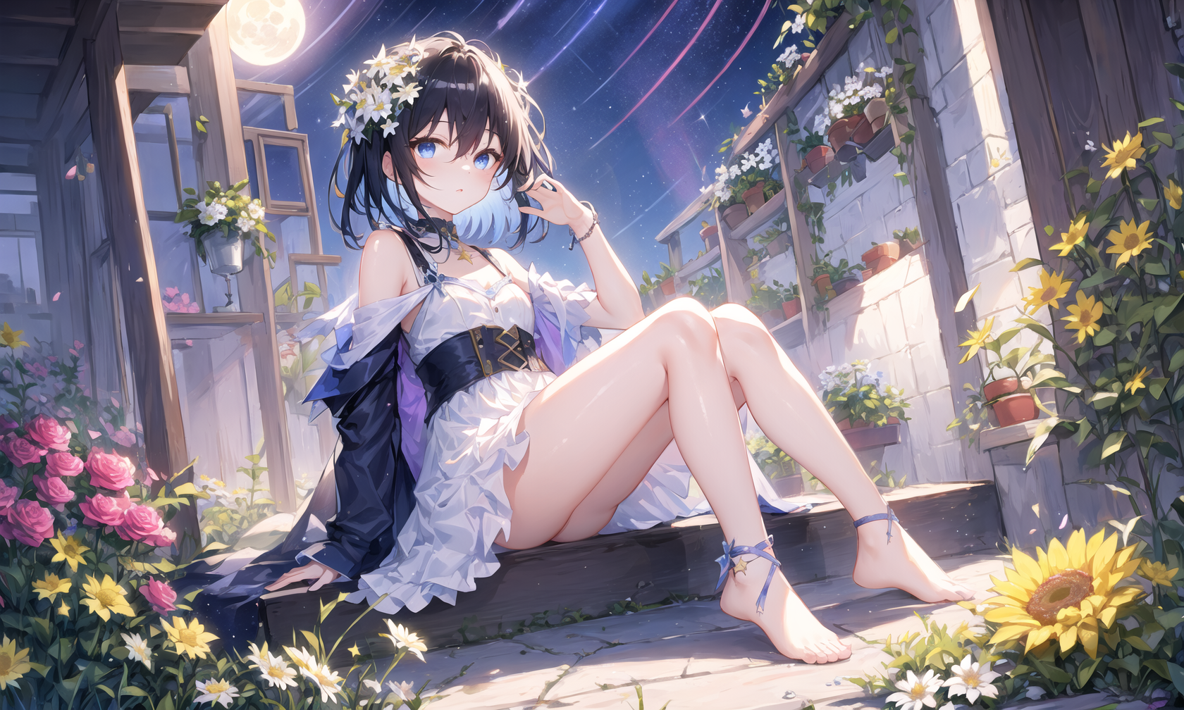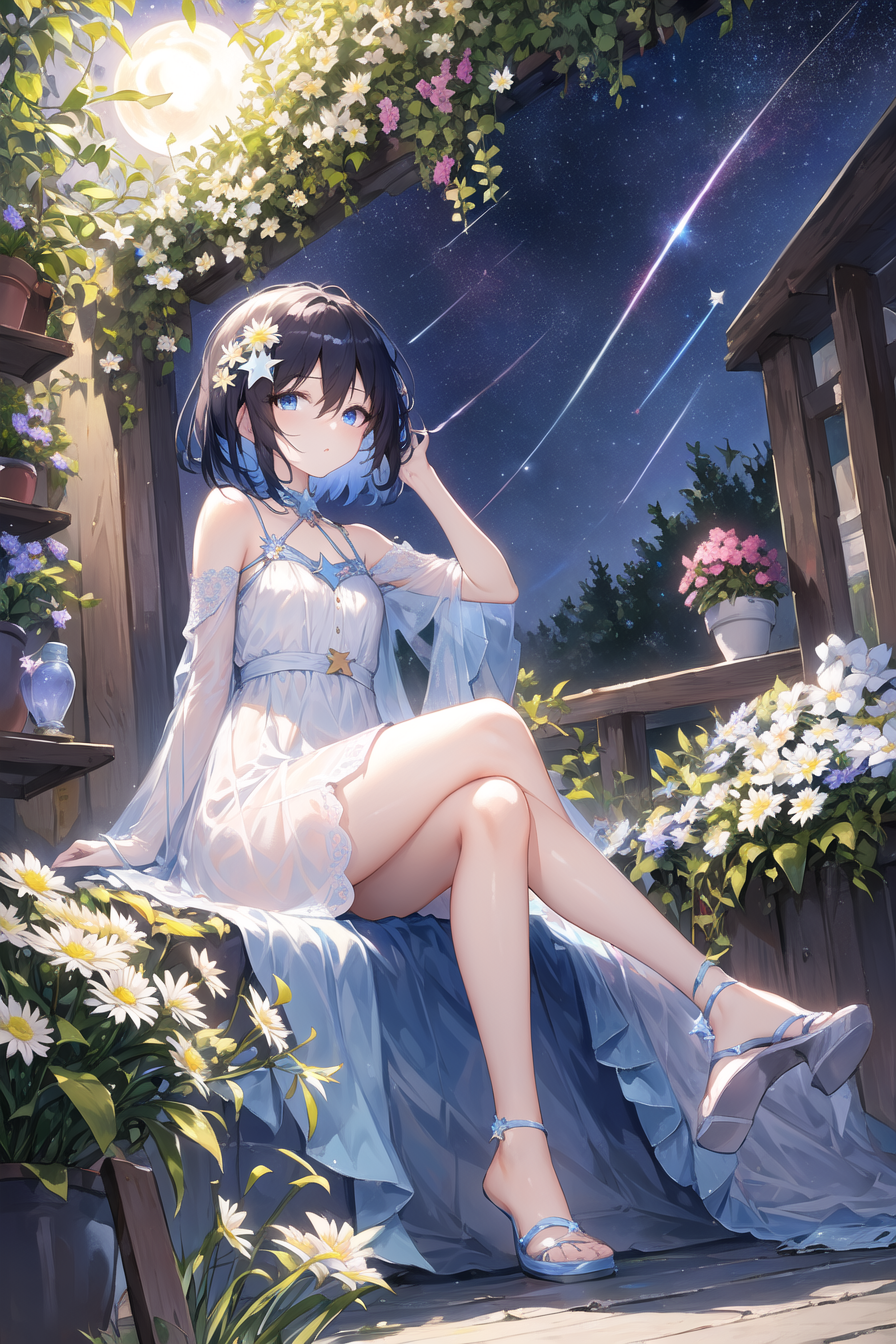 可添加头饰花:hair ornament, hair flower