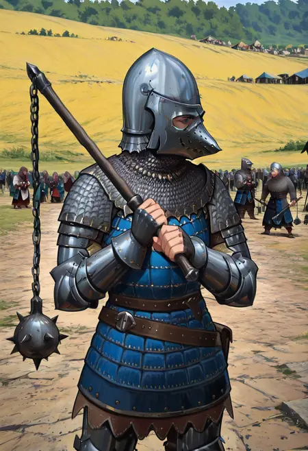此Lora还内置了带有“狗嘴”面甲的头盔(bascinet)。