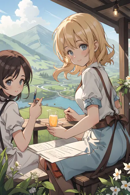 本示例中所有样本均以600x900分辨率输出,并应用了HighRes.Fix 1.5。添加此项仅因在合并以强化背景时视角变化会导致角色变小。LCM输出为7步。使用步数更高的采样器可能改善手指等细节表现,但步数过多反而会产生反效果。