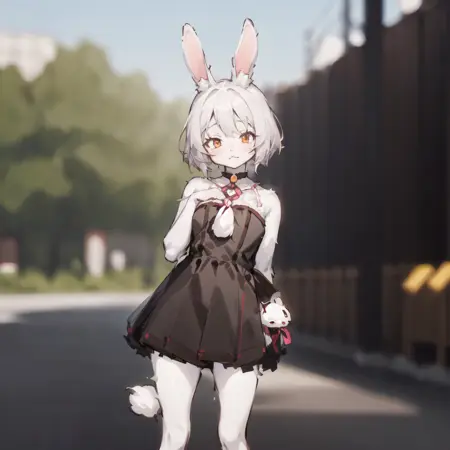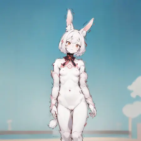 furry, rabbit ears, rabbit nose, :-<, yuran_face, yuran_body, yuran_tail,yuran_hairstyle in prompt and
