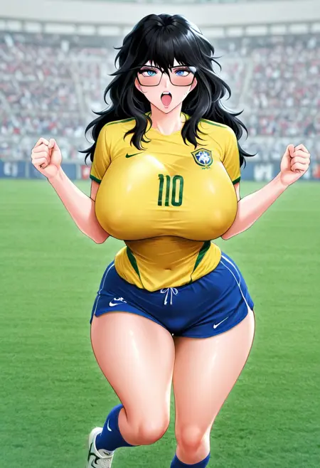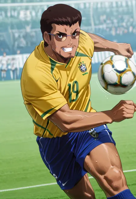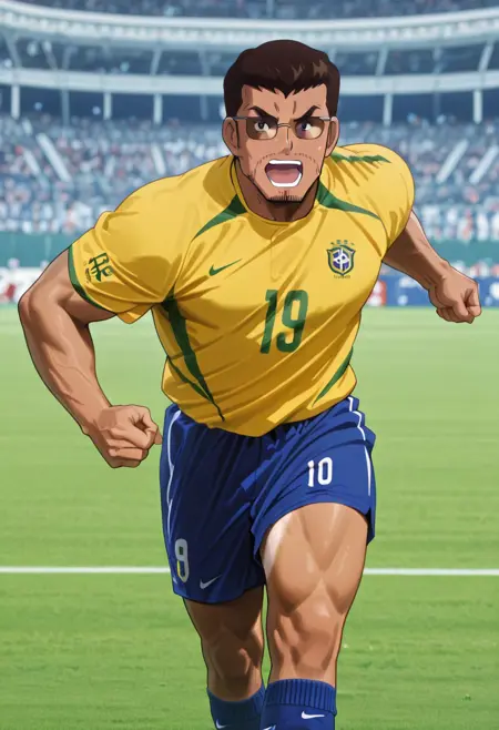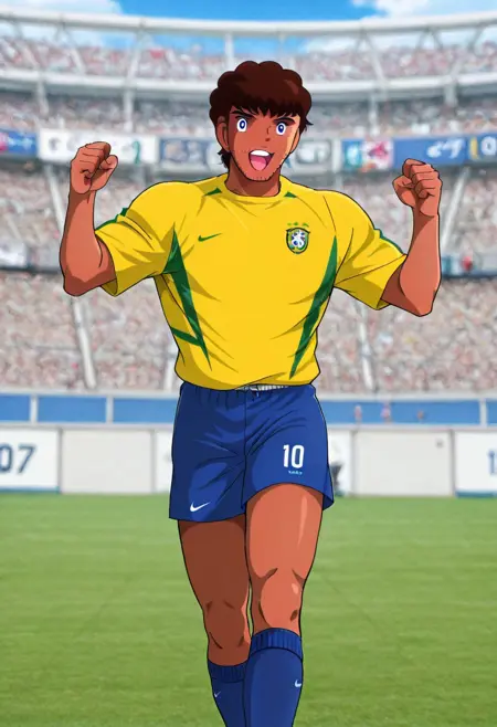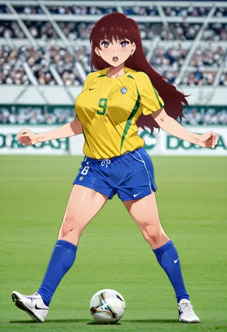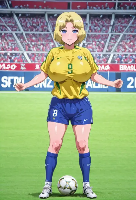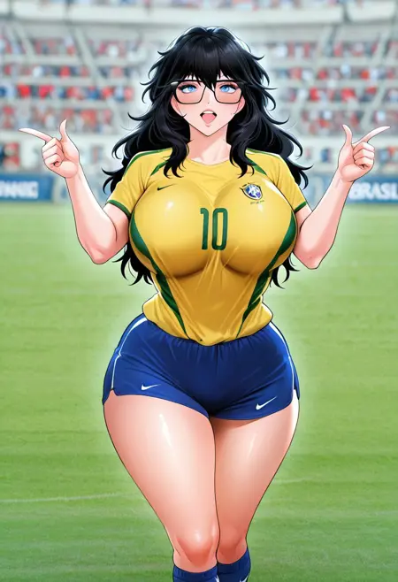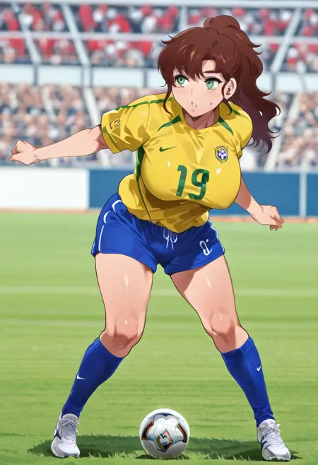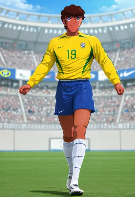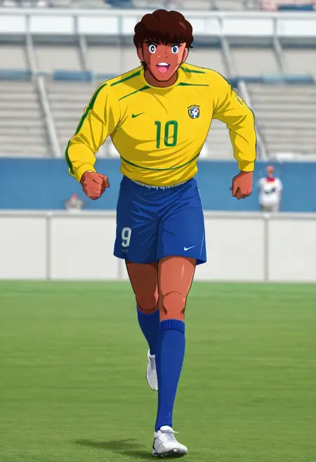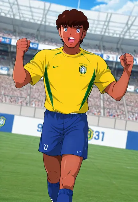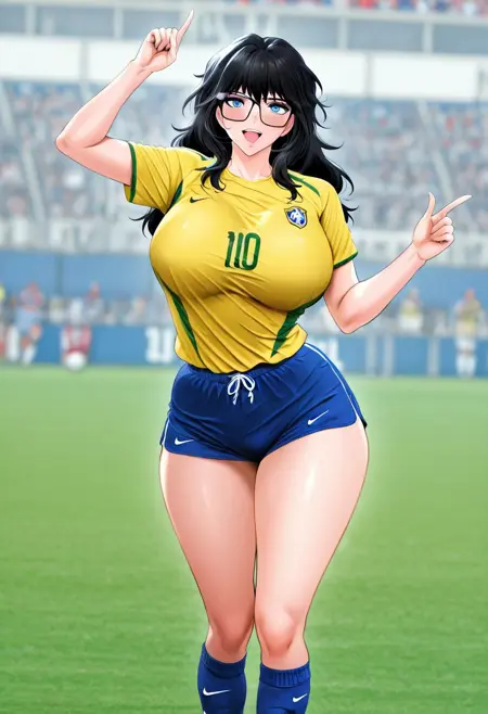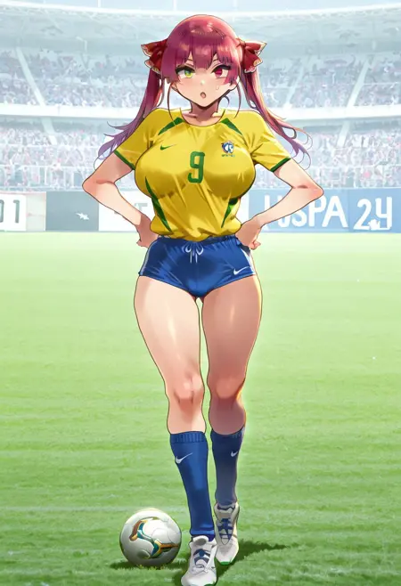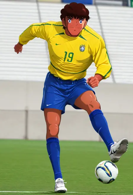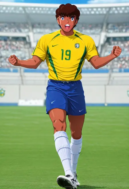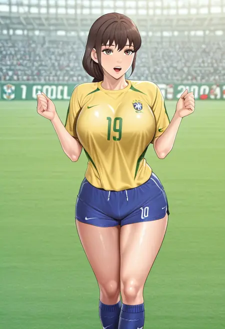 lora:2002\_brazil\_home\_kit:1 , 2002_brazil_home_kit, 녹색 테두리가 있는 노란색 축구 셔츠, 축구 셔츠 오른쪽 상단에 녹색 나이키 체크, 축구 셔츠 왼쪽 상단에 브라질 축구 로고, 축구 셔츠 중앙에 큰 녹색 번호, 브라질 축구 로고 위에 녹색 별 4개