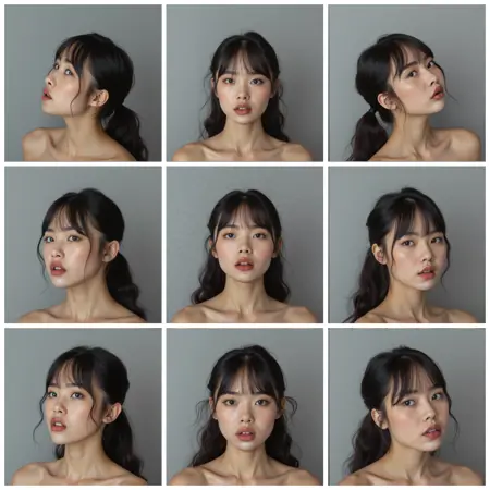 このワークフローを使用すると、同じキャラクターの顔を9つの異なるポーズと小さな表情の違いで3x3のグリッドとして生成できます。