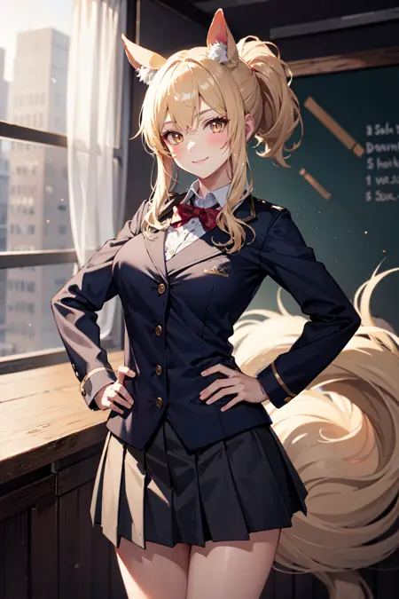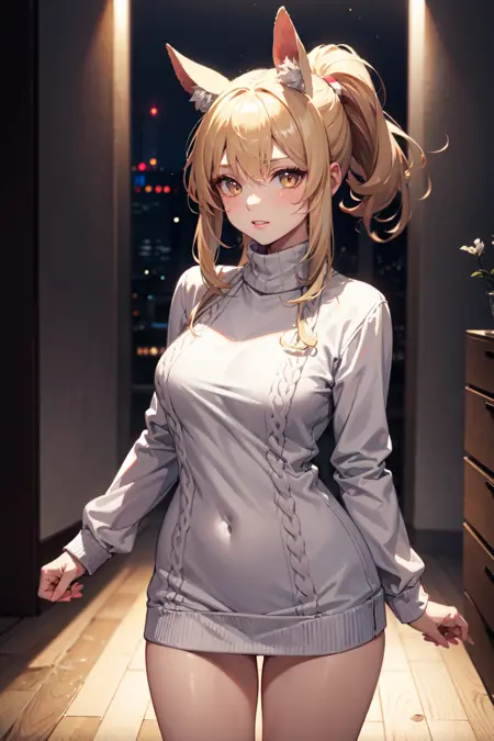 nearl, 1girl, solo, blonde hair, yellow eyes, animal ears, horse ears,