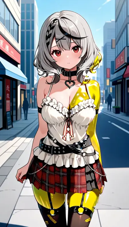 회색 눈, 회색 머리카락, 회색 공막, 동공 없음, 회색 피부, 반짝이는 피부, 금속 피부,
