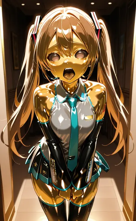 노란 눈, 노란 머리카락, 노란 공막, 동공 없음, 노란 피부, 반짝이는 피부, 금속 피부,
