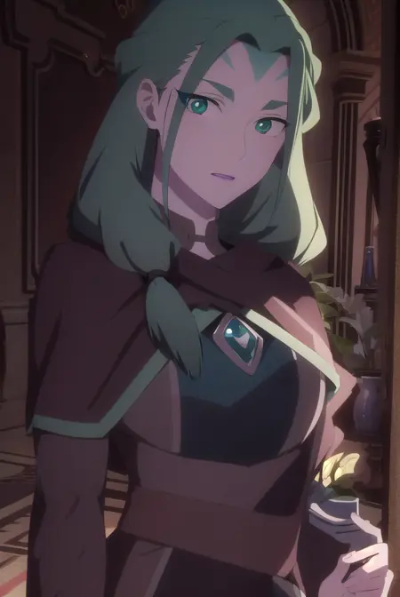 auroth, long hair, facial mark, (green eyes:1.5), braid,