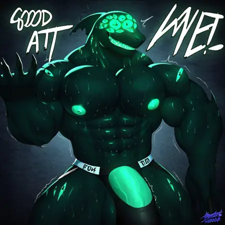 附加词:绿色眼睛,细致的眼睛,疤痕,脸上有许多绿色眼睛,瞳孔呈十字形,发光的眼睛,黑色身体,绿色乳头,