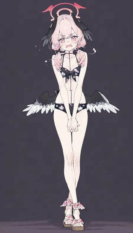 pink eyes, pink hair, low wings , head wings, twintails ,