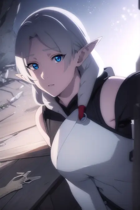 goddess mene, pointy ears, elf, white hair,