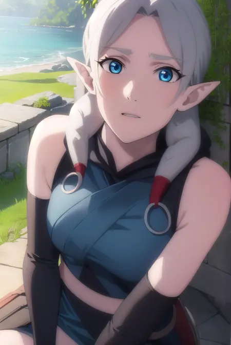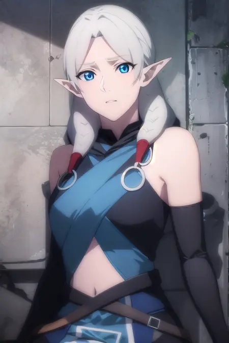 fymryn, pointy ears, elf, white hair, twintails, low twintails, medium hair,