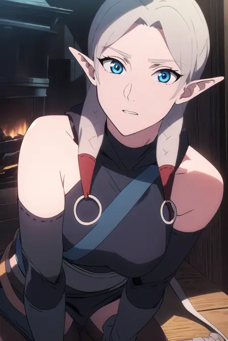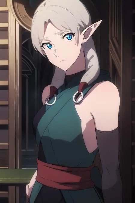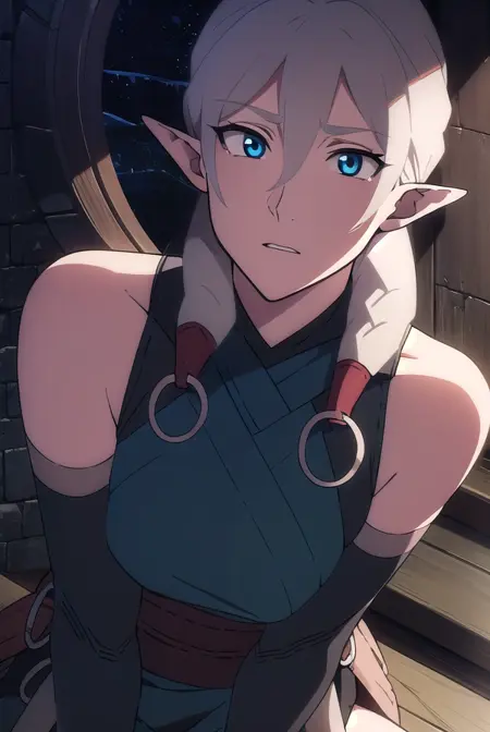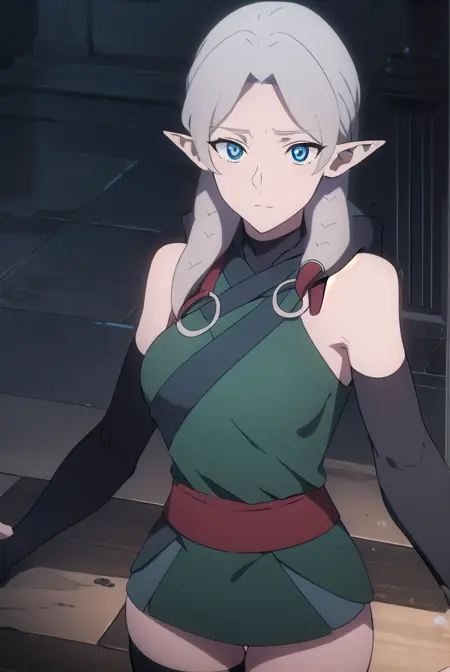 fymryn,尖耳,精灵,白发,双马尾,低双马尾,中长发,
