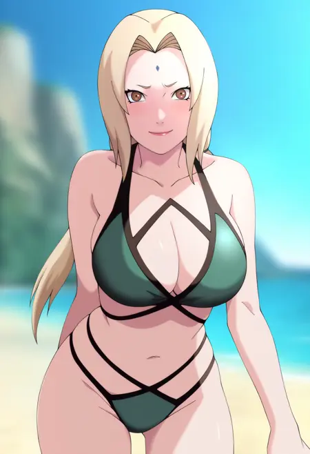 기본 프롬프트: 1girl, tsunade, blonde hair, long hair, brown eyes, forehead mark, mature female, large breasts, cleavage
