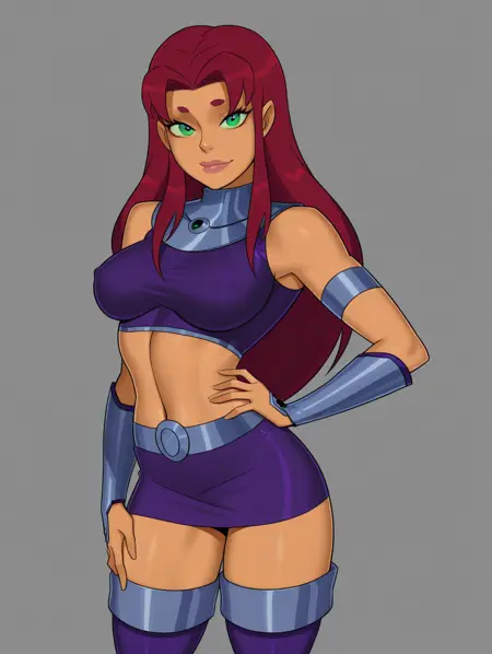 StarFire: SU_StarFire,1girl, 녹색 눈, 입술, 긴 머리, 빨간 머리, 검은 피부 여자, 검은 피부,