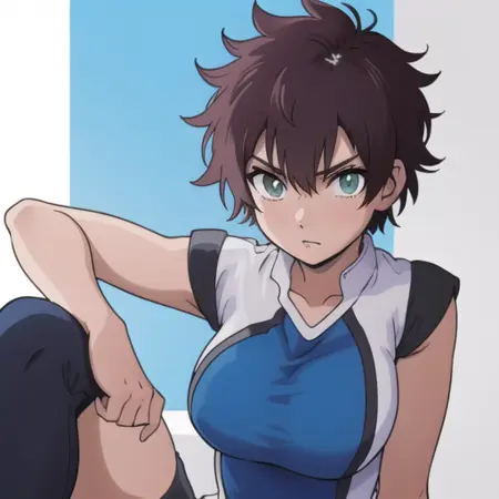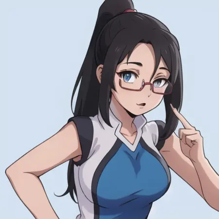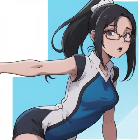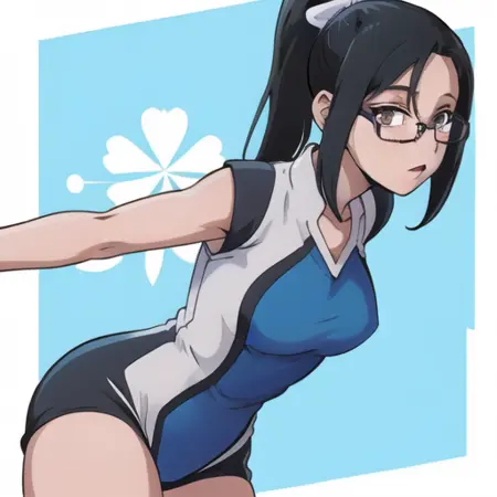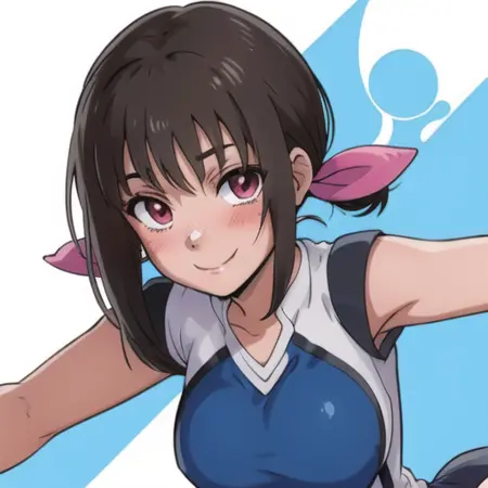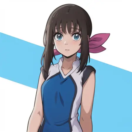 Hanesaki Ayano: dark tied hair, ribbon, bangs