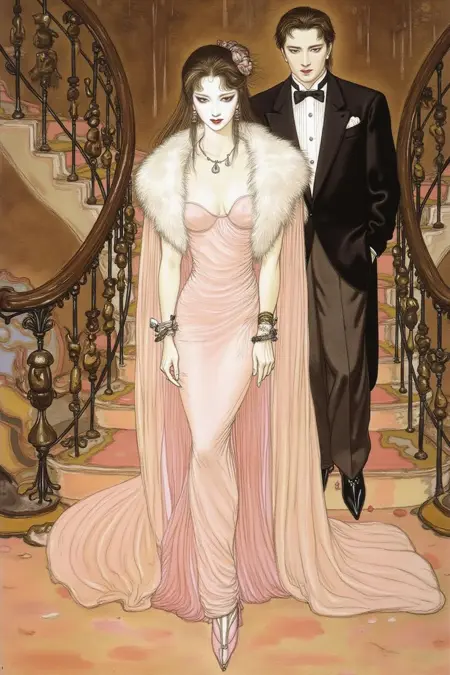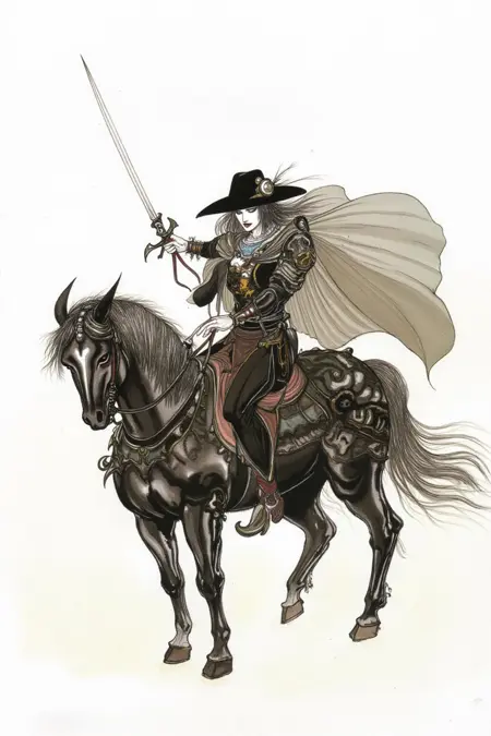 此LoRA尝试捕捉天野喜孝绘制角色的方式,但并不试图模仿其如梦似幻的构图。