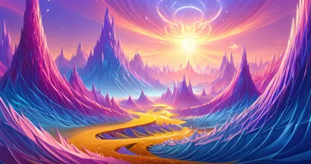 生成アート、レイトレーシング画像、風景、3Dレンダリング、カラーフィールド、アンビエントオクルージョンレンダリング、幾何学的抽象芸術、抽象絵画、コンピュータグラフィックス、抽象芸術、フラクタルの作成を支援