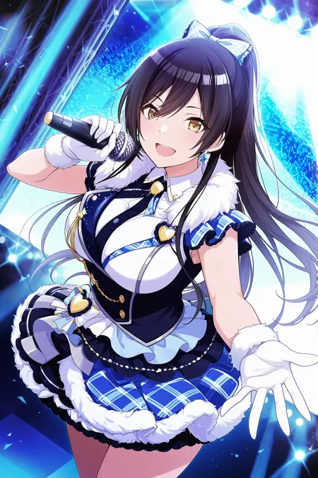 ganaha_hibiki, idolmaster, 1girl, black_hair, blue_eyes