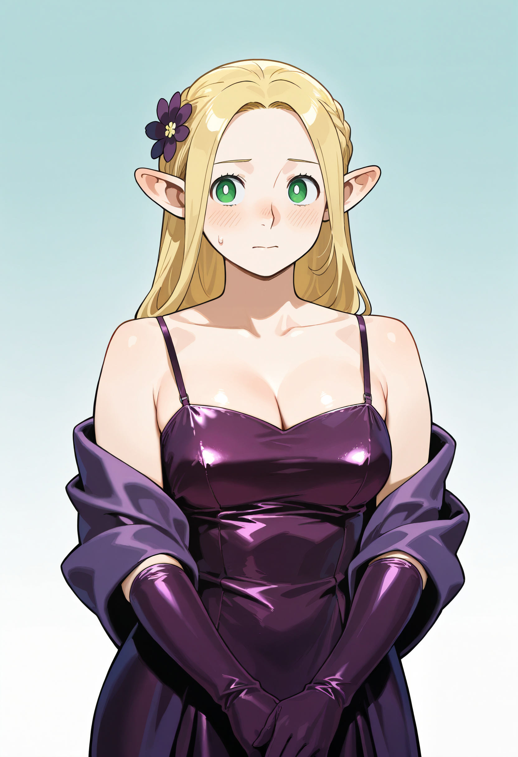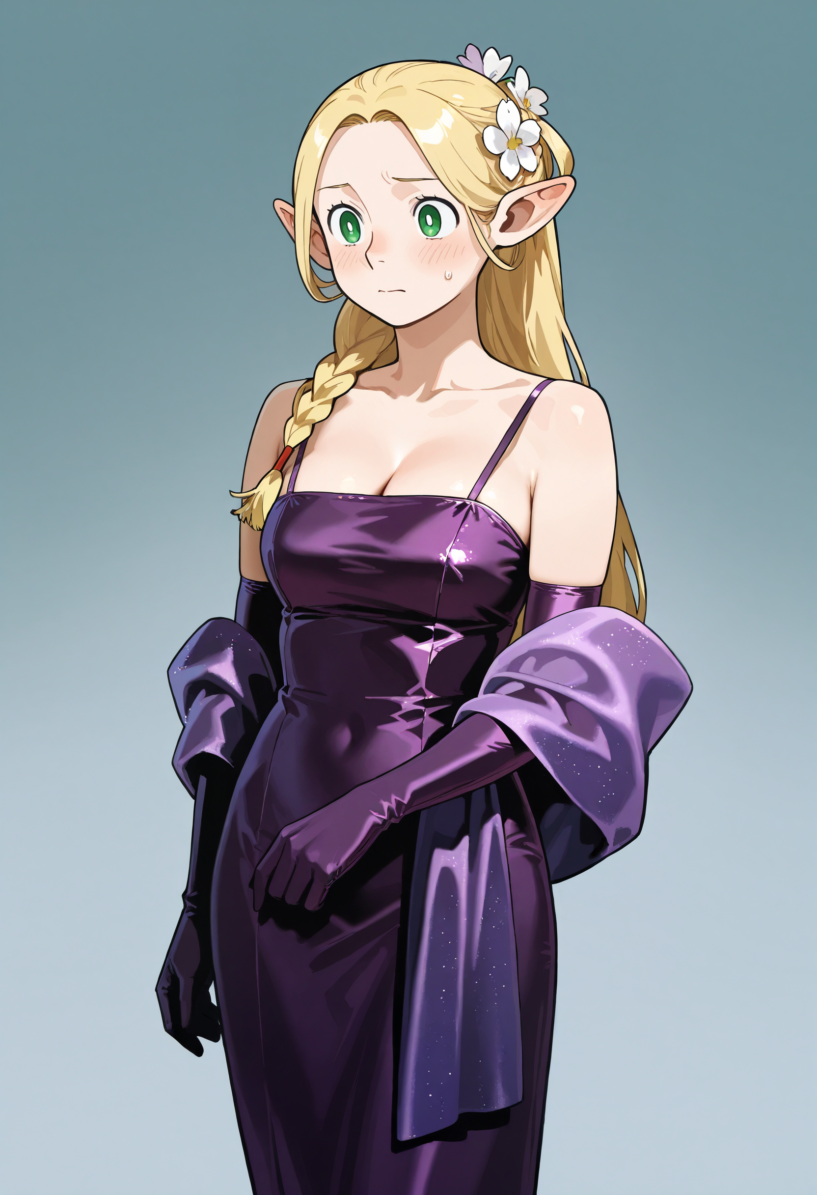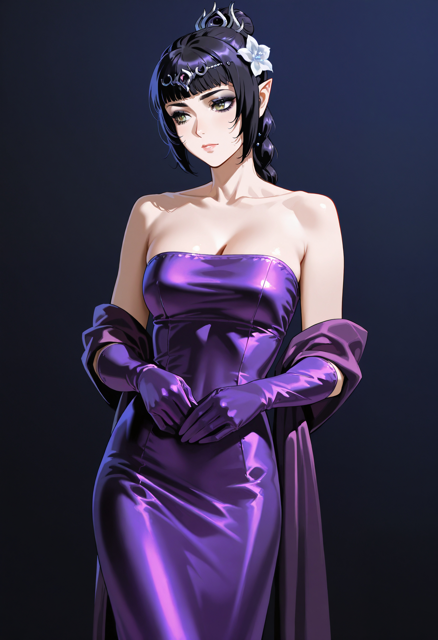 Simple Satin Dress with Shawl and Elbow Gloves