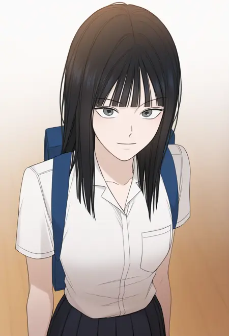 Yoon_Joon_Young_Young, blunt bangs, grey eyes, medium hair, black hair