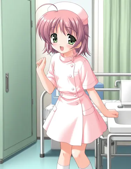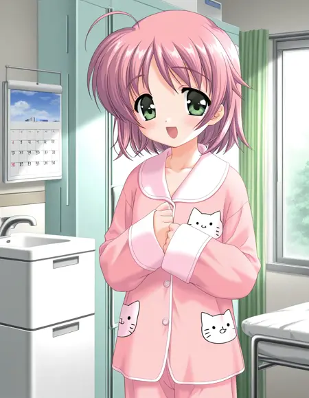 Asakura_Yuuna, 1girl, solo, 분홍색 머리, 녹색 눈, 단발, 아호게,