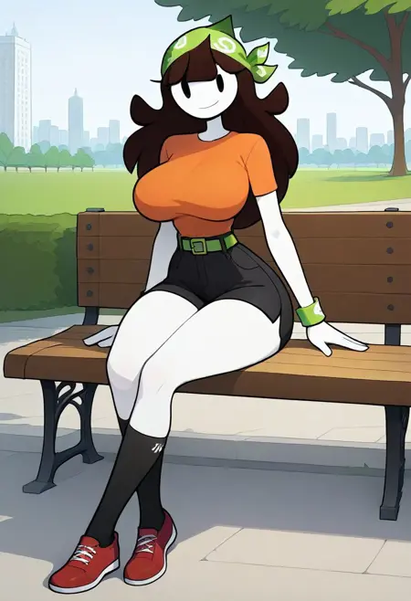pokemon outfit : (green head bandana:1)(orange shirt,green wristbands,green belt,black shorts,black socks,red shoes)