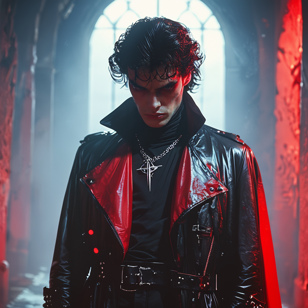 The Style is portrait-focused with cinematic lighting and dramatic poses of vintage fashion with supernatural undertones, esoteric symbols, and gothic elegance.