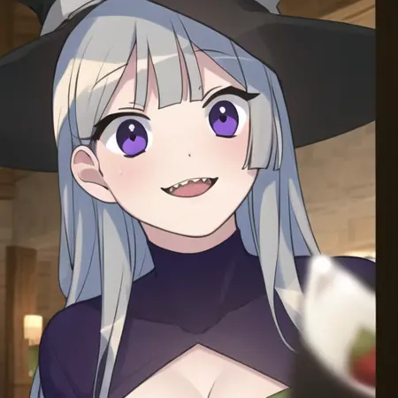 这是游戏《我的世界》中的娘化怪物女巫。使用了主创“泡沫星球”画风制作。