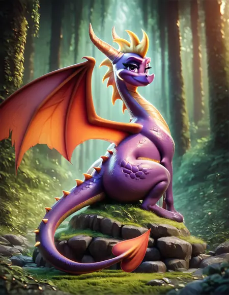 Spyra 拥有多种姿态,她可以坐着、飞翔、躺下,甚至仰躺;你可以生成她的经典版或 Anthro 版,一切由你的想象力决定,支持 SFW 和 NSFW。