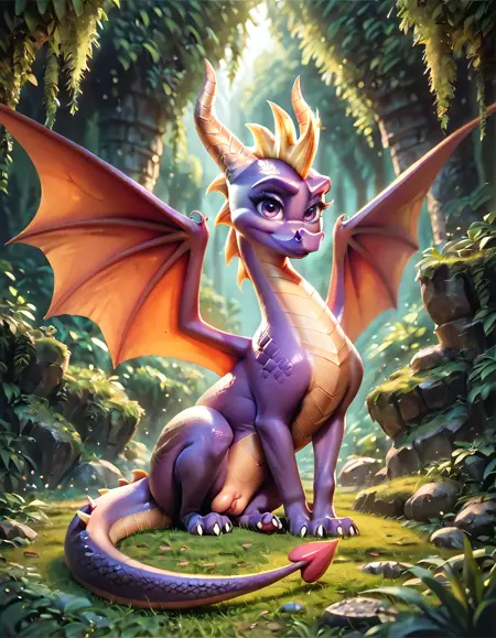 まずおすすめするのは、以下のGIアクティベーションタグを使用することです:"spyra, dragon, female, heart-shaped tail, wings"。ネガティブプロンプトとしては、"strange tail, more tails, hearts, detached joints, strange articulations," を入力されることをおすすめします。