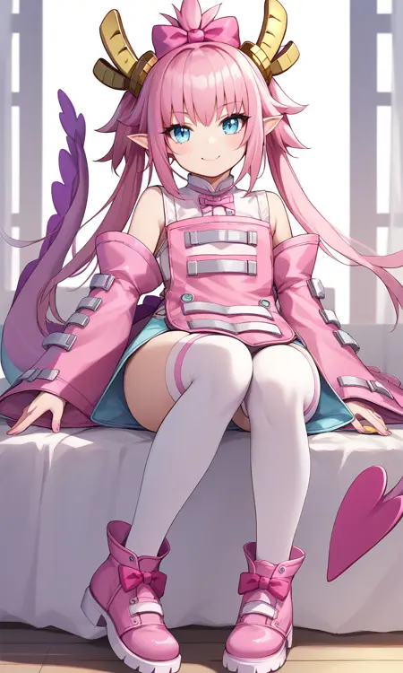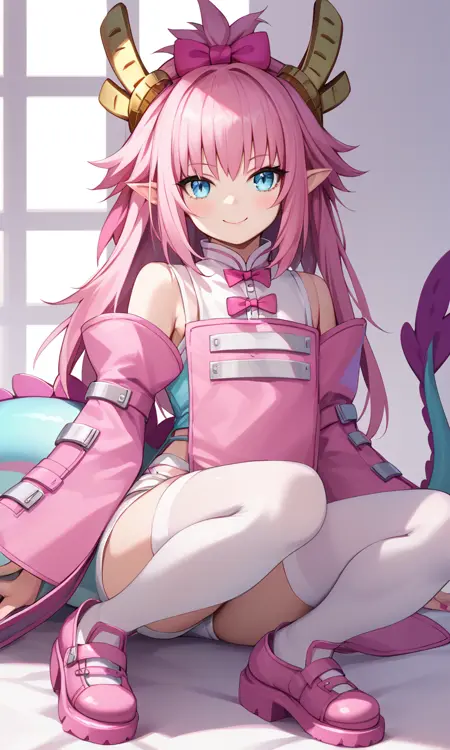 | トレーニングワード | tail, dragon_girl, dragon_horns, dragon_tail, pink_hair, horns, pointy_ears, solo, thighhighs, bow, elizabeth_bathory_(fate), detached_sleeves, hair_bow, full_body, long_hair, 1girl, pink_footwear, white_thighhighs, long_sleeves, wide_sleeves, pink_bow,コピーしました! |