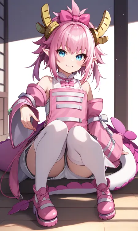 | 학습된 단어 | tail, dragon_girl, dragon_horns, dragon_tail, pink_hair, horns, pointy_ears, solo, thighhighs, bow, elizabeth_bathory_(fate), detached_sleeves, hair_bow, full_body, long_hair, 1girl, pink_footwear, white_thighhighs, long_sleeves, wide_sleeves, pink_bow,복사됨! |