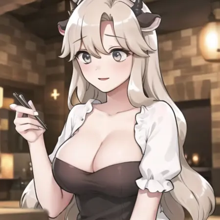 这是游戏《我的世界》中的娘化生物牛娘。使用了主创“泡沫星球”画风制作。