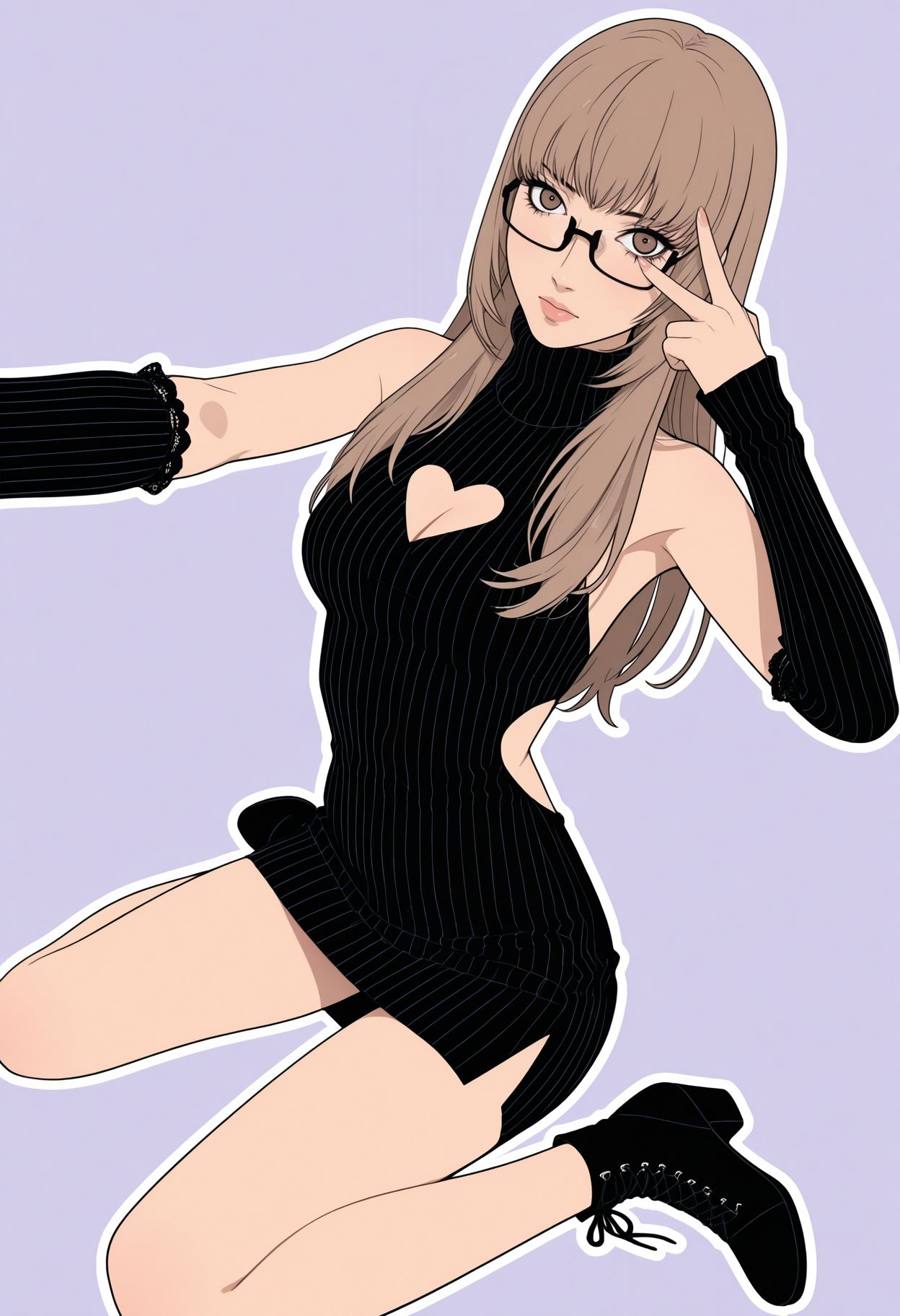 CKatherine, 1girl, long hair, brown hair, brown eyes, glasses