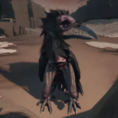モンストラス・クロウは『エルデンリング』における敵対的な野生生物である。非常に長い脚を持ち、走ることに適した大型の鳥で、鋭く尖ったくちばしと、短時間の飛行を可能にするには小さすぎる翼を持っている。