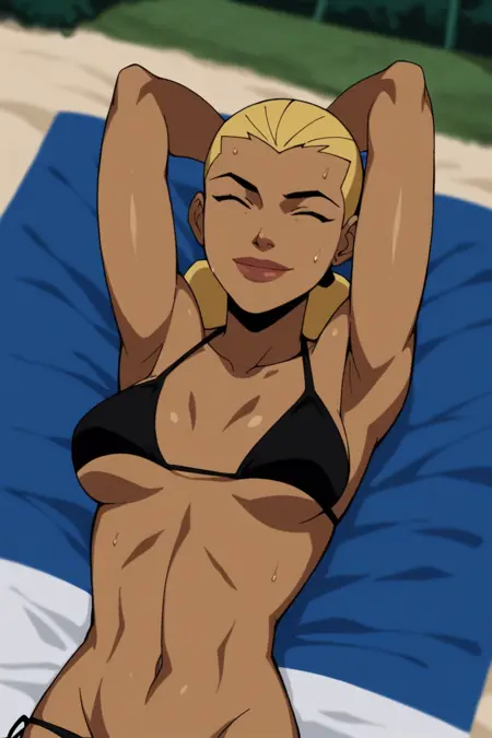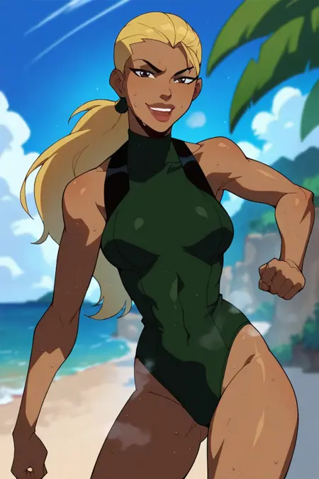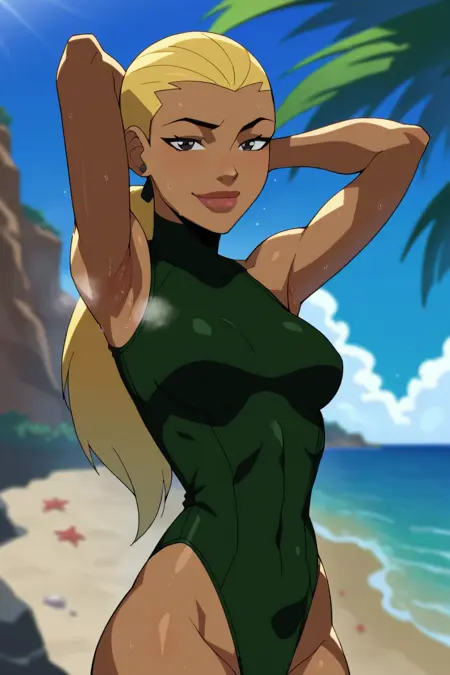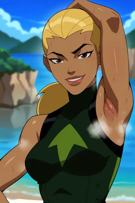 아르테미스: 아르테미스, 금발, 갈색 눈, 단발머리, 두꺼운 입술, 검은 피부, 중간 크기의 가슴,